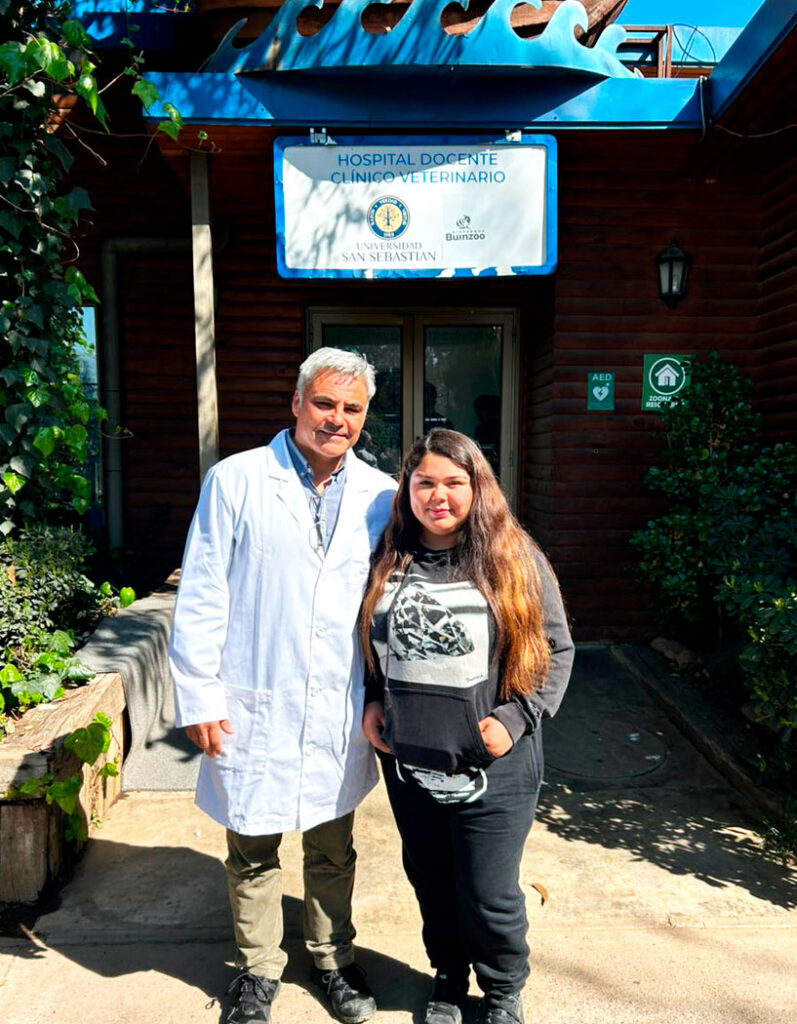 Alondra Villanueva, estudiante de conectividad y redes del Liceo Gregorio Morales Miranda de Hospital, quiere estudiar medicina veterinaria. Junto a su tutor Marcelo Olguín, fueron a visitar el Hospital Clínico Veterinario de la Universidad San Sebastián, emplazado en el Bioparque Buin Zoo, donde conoció de cerca las distintas áreas de carrera. Para ella, la experiencia fue fundamental para su decisión: “Aprendí muchas cosas sobre la carrera que más me interesa. Me mostraron todas las áreas en las que me puedo desempeñar y eso me ayudó a decidir con más claridad el camino que quiero seguir”.
